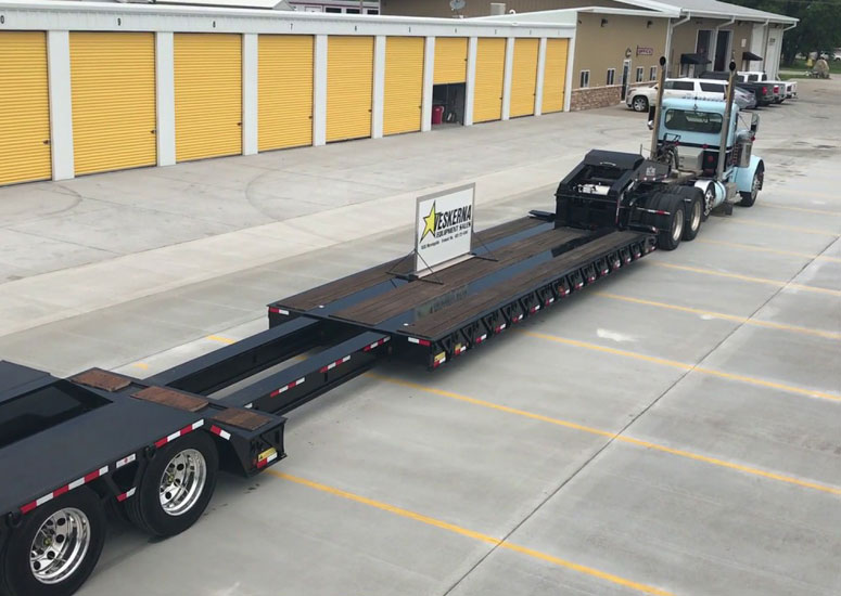 RGN or Removable Gooseneck Trailers are excellent for carrying tall or long freight. An RGN trailer comes with a detachable front, allowing the trailer to be dropped on the ground in order to create a ramp. It is capable of carrying freight weighing up to 150,000 pounds. It can go from 3 axles up to 20 plus axles for heavier shipments. RGN Trailers are more specialized so they are also generally more expensive.
